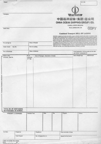 正本提單為簽發(fā)方出具的有簽單章和簽字的 ,有ORIGINAL標(biāo)識(shí)的提單 。一般是一式三份。由發(fā)貨方寄往收貨方,收貨方憑該正本提單提貨。